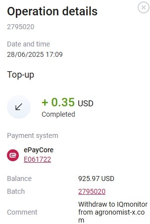 Очередная выплата. Прилетела за пару минут!