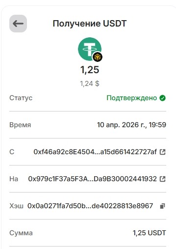 1 USDT 0x4aaaaf1bc5ad715cc17bc52a6ec34757ee2b45bcca0c1b6aca42efcdb6436748