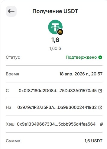 On your wallet 0x325a7D8B2**** Tether BEP20 withdrawn 6 USDT (batch: ?1621580) To see the details of this operation go link